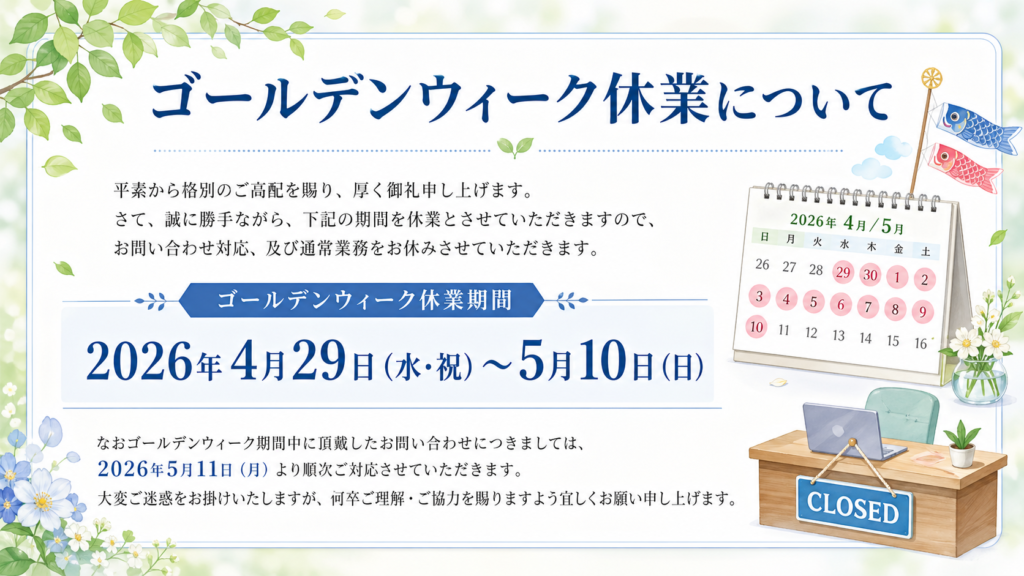 【2026年4月27日】ゴールデンウィーク休業のお知らせ